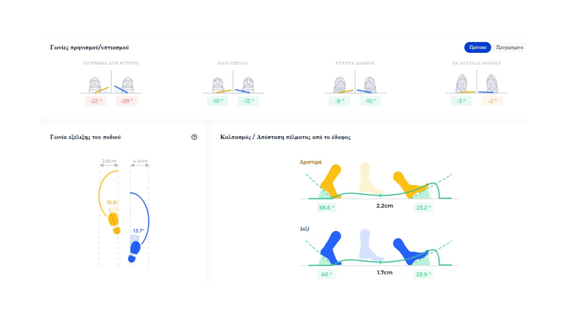 Ως φυσικοθεραπευτές, μπορούμε πλέον να έχουμε άμεσα, αντικειμενικά δεδομένα για την ασυμμετρία στη φάση στήριξης, τη γωνία πρηνισμού, την κατανομή της πίεσης και την ταχύτητα βάδισης, χωρίς πολύπλοκες ρυθμίσεις.