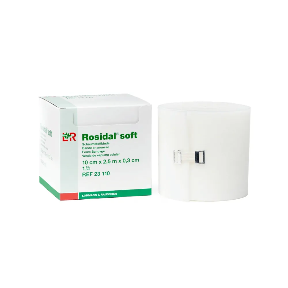 Η λεμφική και φλεβική περίδεση απαιτεί και την κατάλληλη υποστήριξη. Ο αφρώδης επίδεσμος Rosidal soft είναι ιδανικός για αυτόν ακριβώς το σκοπό. Διανέμει τις συμπιεστικές δυνάμεις του Rosidal K ομοιόμορφα στο εφαρμοζόμενο άκρο και εξασφαλίζει την απουσία σημείων έντονης πίεσης. Εξαιτίας των ανοιχτών πόρων και της ειδικής τεχνοτροπίας κατασκευής, ο αφρώδης αυτός επίδεσμος μένει σταθερός και δεν ολισθαίνει.