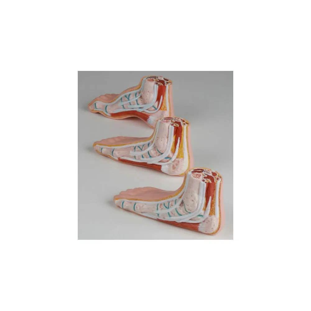 Αναπαραγωγή φυσιολογικού άκρου ποδός, πλατυποδίας και κοιλοποδίας, στο μισό περίπου του φυσιολογικού μεγέθους. Στα μοντέλα έχει γίνει οβελιαία διατομή όπου φαίνονται τα οστά, οι μύες και οι σύνδεσμοι. Διαθέσιμα μόνο ως σετ.